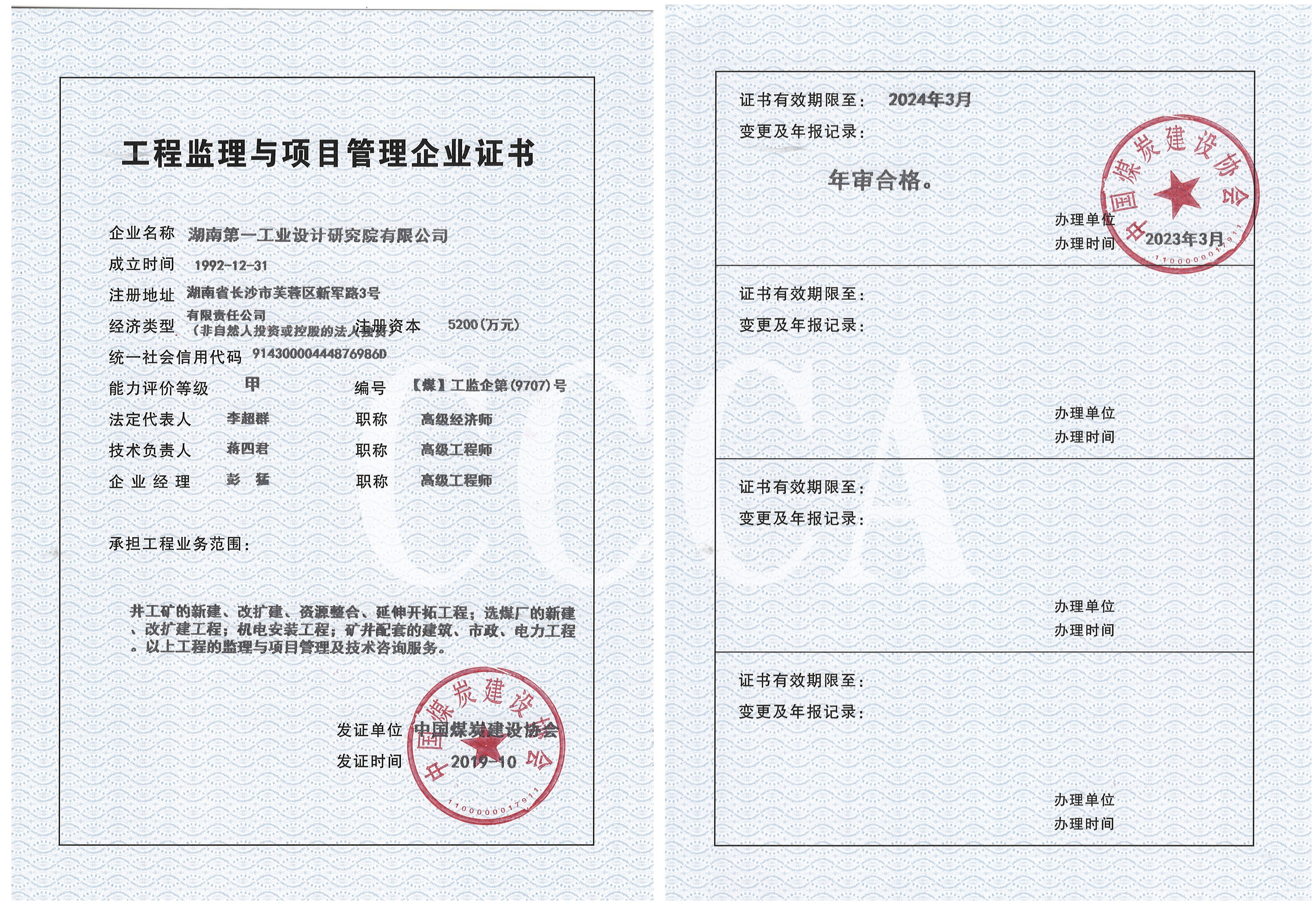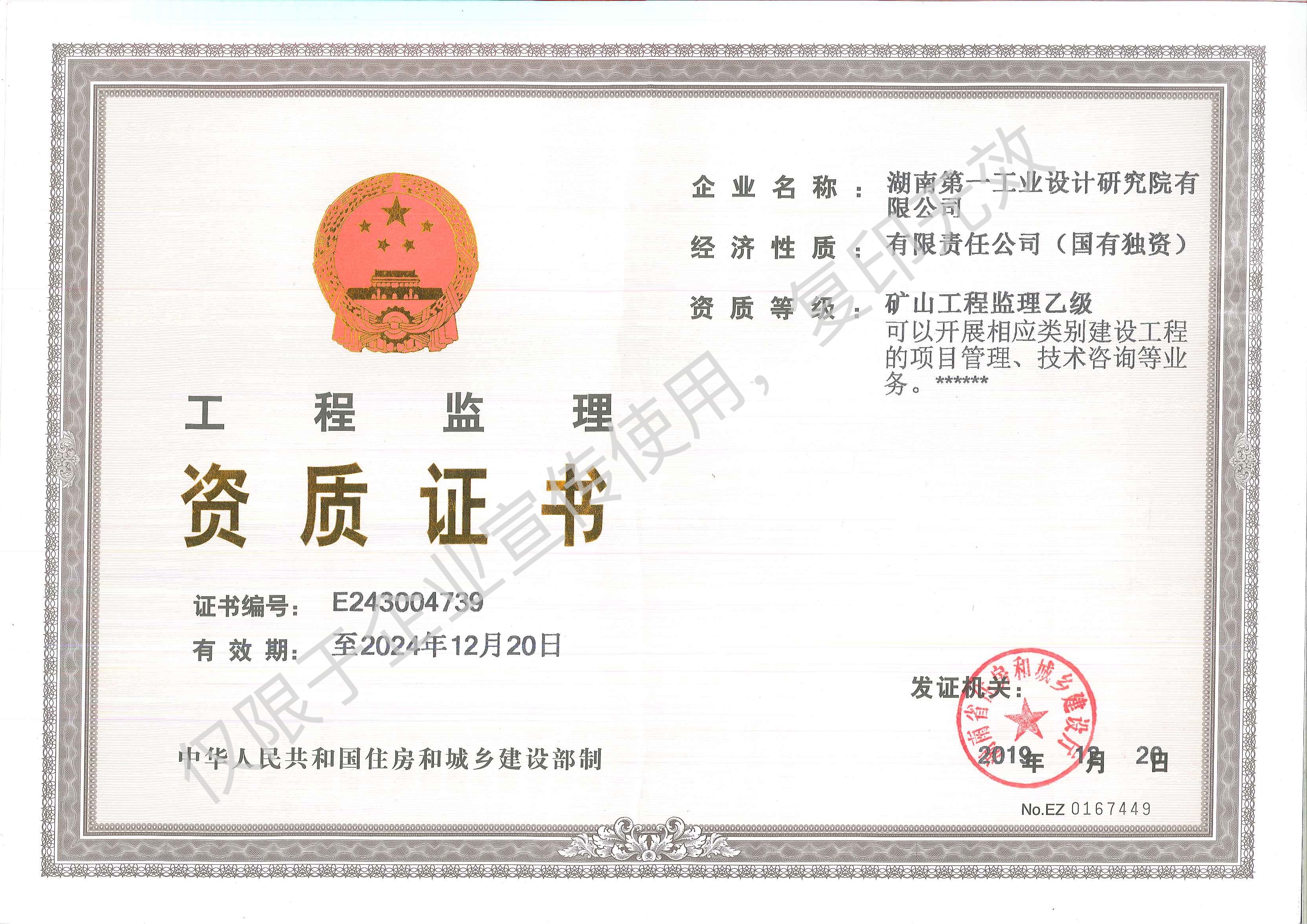 工程監(jiān)理資質證書(礦山工程監(jiān)理乙…